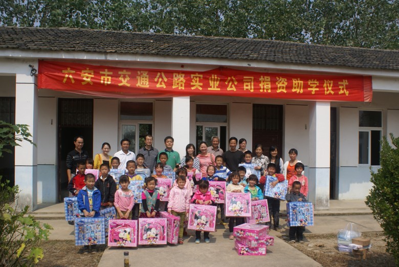 2012年9月19日上午,六安市交通公路實業(yè)有限公司深入金安區(qū)夏普希望小學(xué)開展“關(guān)愛留守兒童、捐資助學(xué)”活動。公司總經(jīng)理萬世林、副總經(jīng)理祁偉力等一行參加了活動。此次活動共為2名品學(xué)兼優(yōu)、家庭貧困的留守兒童送上助學(xué)金,并為27名留守兒童派發(fā)了一批學(xué)習(xí)用品。